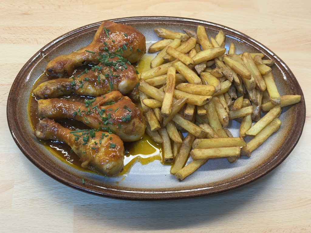 - Poté pekáč odkryjte a paličky dopékejte ještě přibližně 40 minut. Během pečení je zhruba každých 10 minut otočte a průběžně potírejte zbylou marinádou.
