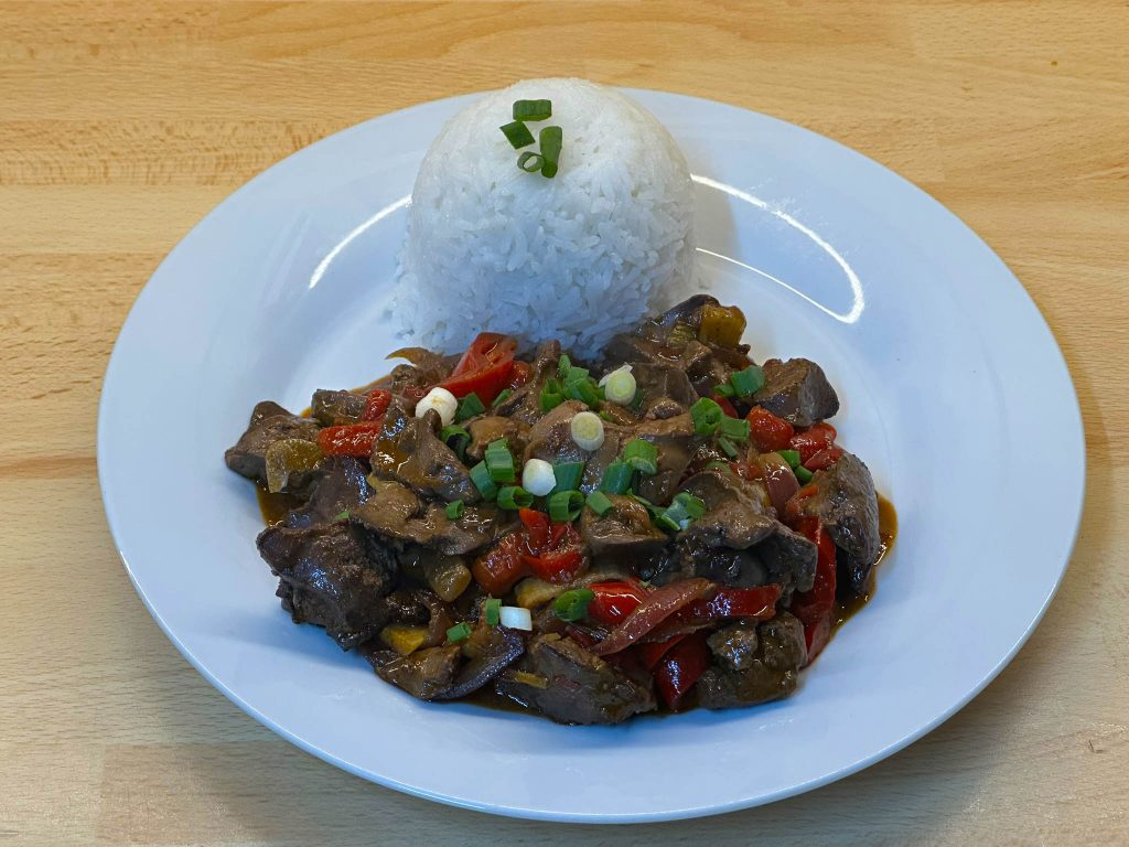 - Přidáme játra, česnek, chilli papričky, kečup, kmín a pepř. Zprudka restujeme asi 5 minut.