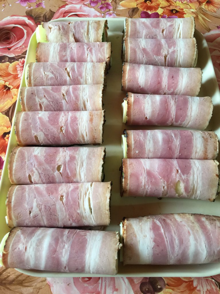- Přes sýr omotejte anglickou slaninu tak, aby vše dobře drželo pohromadě.