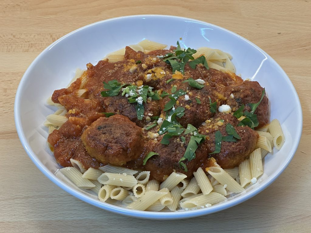 S těstovinami, bramborovou kaší nebo s rýží. Navrch dejte nasekanou petrželku a strouhaný parmazán.